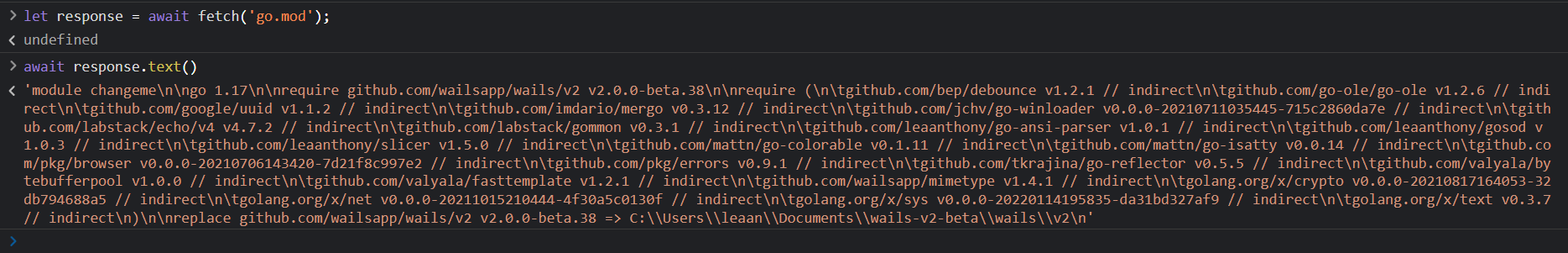 No entanto, se requisitarmos go.mod, veremos a seguinte saída: